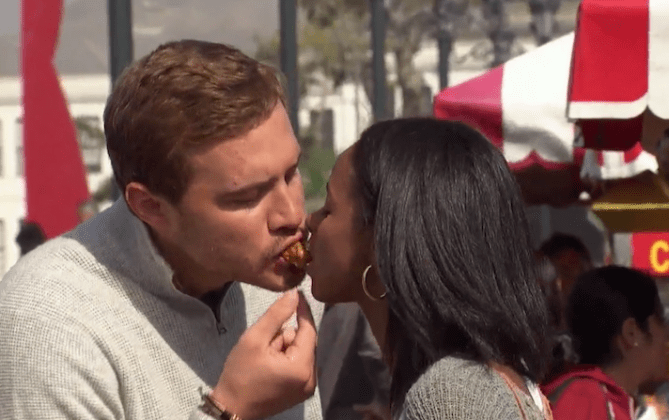 Apparently, the amount of havoc wreaked by the live Cedar Point cucking was unsatisfactory. That’s because, in this same episode, the show somehow had the group date football game end in a tie on the SAME NIGHT Alayah returned after being eliminated. This meant that all 13 sweaty, visibly bruised women were there to witness Peter giving her their hard-earned rose. If I had one of those serial killer walls in my home with thread connecting a lot of sticky notes devoted to this show, the night of Alayah’s return would be the one I would circle as the beginning of this season’s rapid descent into garbage town.  Speaking of Alayah…