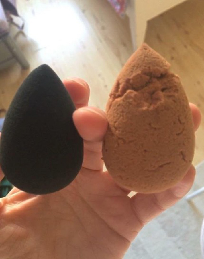 The post, which was titled “brand new vs. 7 month old Beauty Blender [sic]” shows a brand-spankin’-new Beautyblender next to, uh, what supposedly is a Beautyblender, but actually looks like a destroyed, ripped-apart monster thing. Basically, nothing we’ve seen in our own kits after seven months. “Omg how…” wrote one user, “I have mine for 1+ year [sic] and it looks brand new.” And the same sentiment was echoed by pretty much every other Reddit user: “I’ve had one of my beauty blenders for 5 years and it looks fine. How did this happen it looks like it was attacked by an animal,” wrote another user.