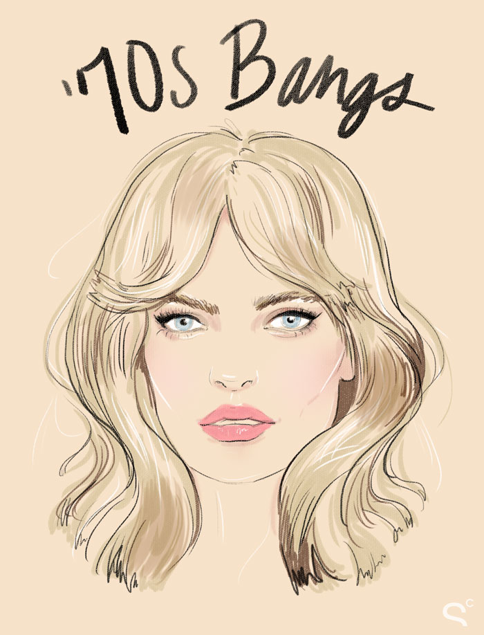The ’70s-style bang is a great midpoint for gracefully growing out shorter bangs, but if you’re in it for the long haul, they’re basically the gateway to a sweet vintage, California-cool look—think Alexa Chung or Sienna Miller circa “Alfie.” Once your shaggy bangs fall below your eyes, you can part your hair in the middle and blow them out to the sides, feathering optional (but encouraged). This fringe looks great if you’ve got naturally thick, wavy hair. Just be sure to keep your round brush and blowdryer handy to style ’em—volume is the key to keeping this look flirty.
