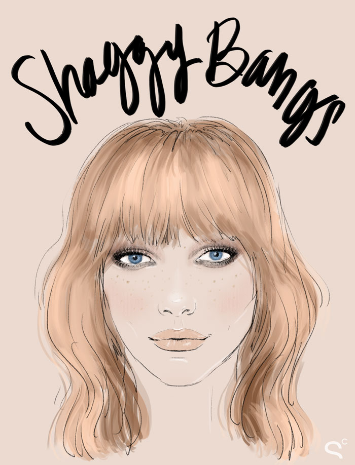 Shaggy bangs are what happens when you let your mod bangs grow out, then cut vertically in to the ends to give them a slightly piece-y texture. The good thing about that is that even if they fall in your eyes, you can still see through them, making these bangs prime for flirting. The messier the better, so a bit of grit on your fingertips run through the ends of your fringe should do the trick. Try a moldable high-shine pomade like Bumble and Bumble Semisumo ($29).