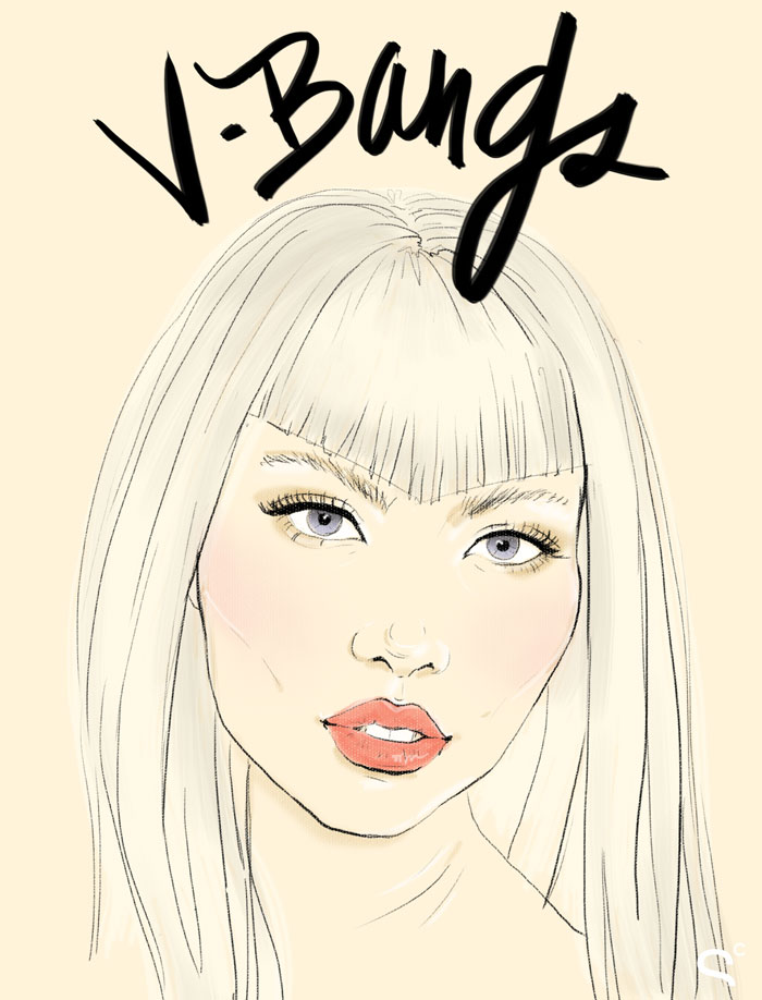 The V-bang calls to mind the fine line between glamorous and severe, like Bettie Page by way of Maleficent. Needless to say, they’re not for the timid, but the good news is that V-bangs are easy to snip into micro bangs if you find them to be too much look for you. With a quick fix that simple, why not have fun with them for a little while? But beware: they’re temperamental, so make sure you always have a hard-hold hairspray and a fine tooth comb on hand to keep your fringe in check.
