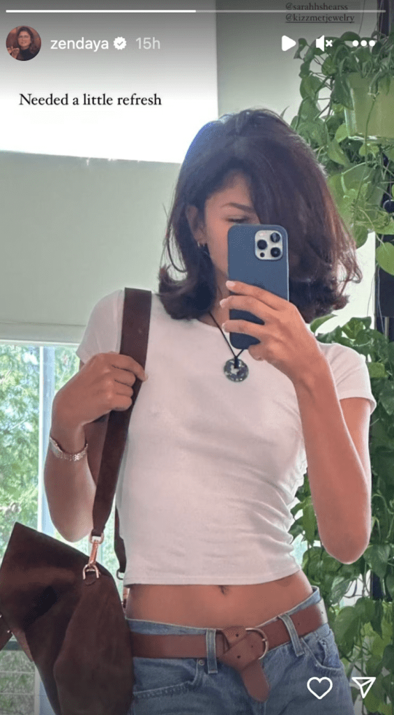 Last week, Zendaya posted a sneak peek of her new hair to Instagram stories with the caption: “Needed a little refresh.” The blown-out, layered style looks like a mix of Cindy Crawford (and now, her daughter Kaia Gerber) and Jennifer Aniston’s “The Rachel” haircut from Friends. People made fun of the cut at the time because really, it’s an iconic look and one that stands the test of time.