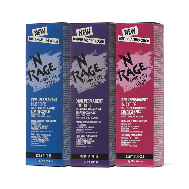If you’ve got multiple parties on your social calendar and want your hair color to last a bit longer, try a demi-permanent hair color (like the ones by N Rage, sold at Sally Beauty Supply stores.) You’ll have your crazy color for about 25 shampoos, but you won’t need to worry about it flaking off or making your mane unmanageable.