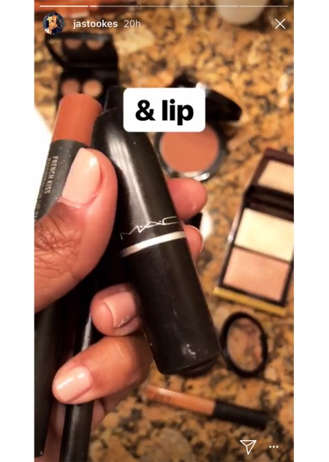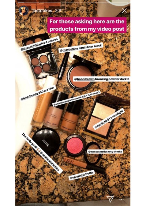 Soon after, Tookes added to her story; this time, posting a photo of all the products. While scanning the pile of Tom Ford highlighter, Chanel eyeshadow palette, and of course, Fenty Beauty Foundation, a drugstore name quickly caught our eye: Maybelline. As best as we can tell, the exact liner is their Master Precise Ink Metallic Liquid Eyeliner ,which retails for just $8.99.