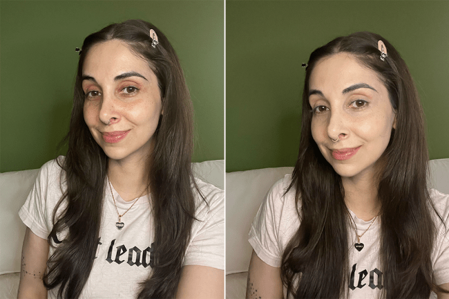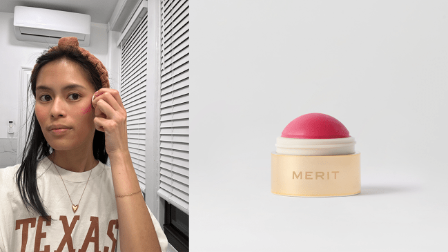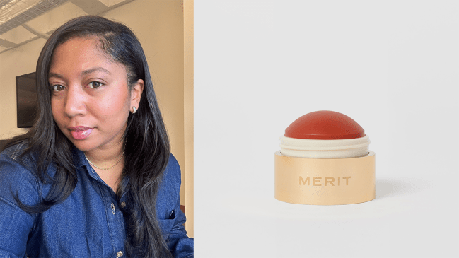 “Merit just knows how to make a good, convenient makeup product. Its Flush Balm blushes are truly elite in that they create a natural pop of color that’s not too much, and not too little—the Goldilocks of blushes if you will! In the photo above, I only applied the shade Cheeky to my right side (left in the photo), so you can see what one side looks like with blush and what one side looks like without. It’s fairly long-lasting, although since I have oily skin I do find that I need to touch up mid-day.” — Gina Vaynshteyn, Senior Commerce Director