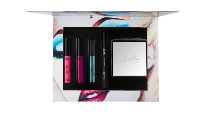 The Sleek x Miss Fame Collection has the kind of bold, look-at-me shades you would expect from a drag performer. The box, which has a drawing of Miss Fame on it, includes: an i-Art Precision Liquid Eye Color in NeoPop (an emerald green); an Intense Waterliner in Zodiac Black; Distorted Dreams Highlighting Palette (with five shades); and two Lip Shot Gloss Impact colors in Dress to Kill (a bright pink) and Do What I Want (a true purple).