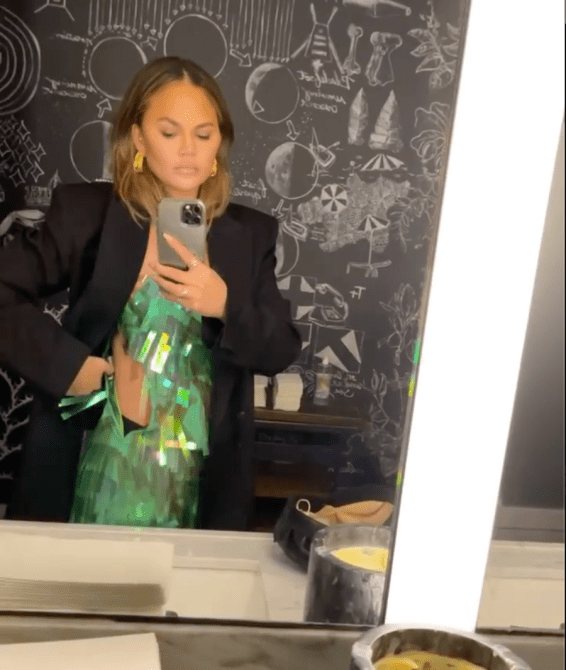 The cookbook author, 35, shared some photos of her date-night outfit to her Instagram on Monday, February 1, after dining out with husband John Legend, 42, in Beverly Hills on Sunday. In the photos, Teigen could be seen wearing a flashy green mini dress, strappy heels, and a chic oversized black blazer—but there was more going on there than what meets the eye. As it turns out, Teigen’s blazer wasn’t just there for fashion’s sake: Hidden beneath it was a pretty major wardrobe malfunction!