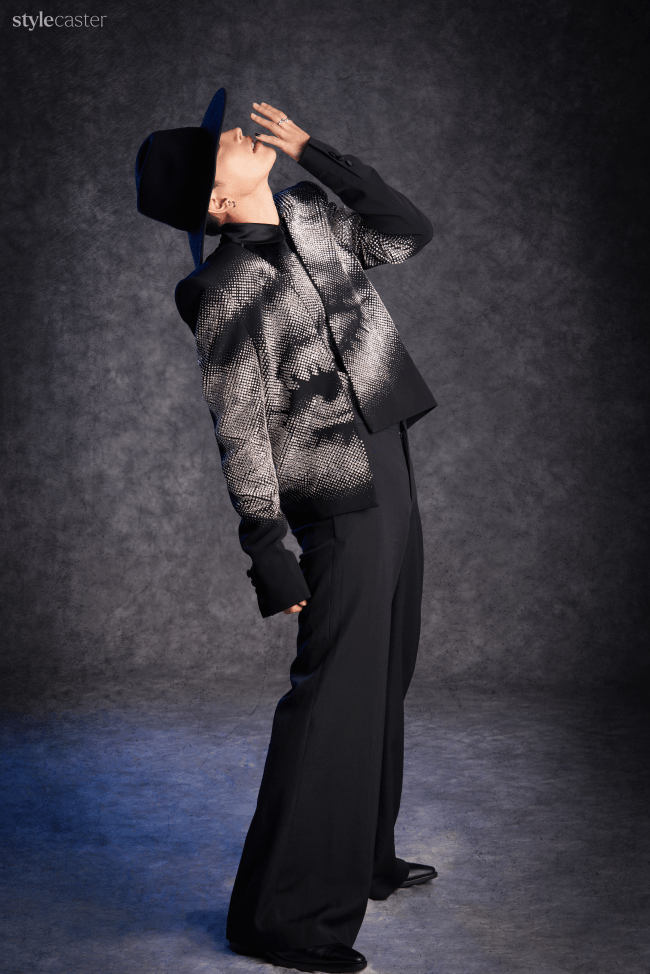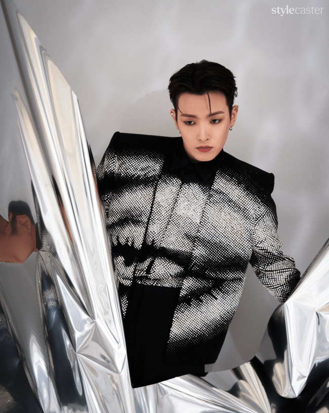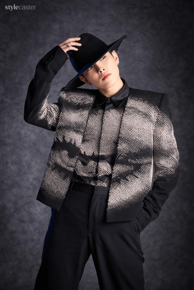 It’s the day before ATEEZ’s monumental and rainy show at Citi Field in Queens, NY—one of the stops on their “[TOWARDS THE LIGHT : WILL TO POWER]” world tour. And despite a busy schedule, HONGJOONG arrives at StyleCaster’s midtown Manhattan studio with a wide grin and boundless energy. He meticulously curates every decision of the shoot. He even brought his own accessories—a wide-brimmed hat to emulate his idols—and he executes each pose with precision. He’s genuinely mindful of his surroundings, thanking the staff any chance he gets and making sure they get their proverbial flowers for their hard work.