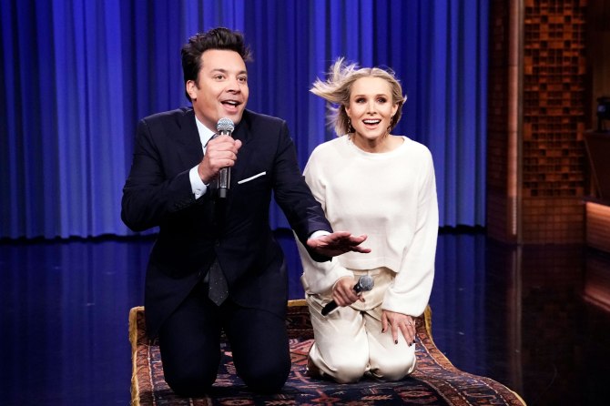 There’s not much left in the world that Kristen Bell can’t do. She’s proved she’s savvy and hilarious, starring in television series like Veronica Mars and The Good Place. She’s raising two kids. She’s started her own eco-conscious baby line, Hello Bello. And, oh yeah, she’s casually a fantastic singer. Jimmy Fallon and Bell’s “History of Disney Medleys” on The Tonight Show yesterday is one of the best segments we’ve seen in a while. Fallon has some great vocal chops, as does Bell. And it was perfect for the adorable blonde, because Frozen 2 is heading to theaters. Bell stars once again as the adorably clumsy but fiercely loyal, Anna. When Frozen came out, fans were stunned to hear Bell’s singing. Starring against Idina Menzel (as Elsa), couldn’t have been easy. When asked if shew was intimated to work with the former Wicked star, Bell exclaimed, “YES!!” She then explained, “I mean she’s like the best singer on the planet. Currently on the planet.” But Bell totally holds her own with the acclaimed Broadway actress, an impressive accomplishment. And last night, she proved she can perform under pressure! The stakes are high on live television—very different from a recording studio—and Bell handled it like a total pro, belting out songs from some of Disney‘s greatest hits.