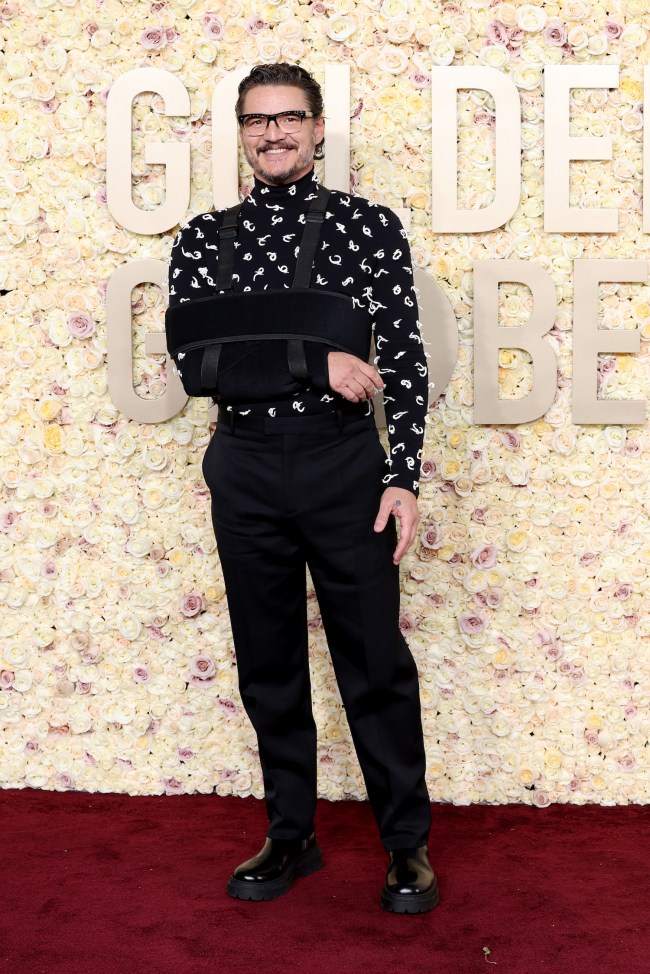 In 2023, we deemed him our men’s fashion muse. And even he can make an injury look impossibly stylish, so what was with Pedro Pascal’s arm at the Golden Globes? A sling was an accessory we weren’t expecting. We don’t know the circumstances of his injury as of yet, but it didn’t look like it was bothering him too much.