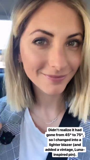 The creator of the blog Cupcakes and Cashmere gave us a lesson in CEO style, perfect for the office, a conference or an interview. Schuman documented her BlogHer conference-ready look through a series of stories on her Instagram. Clothing-wise, she rocked a white tee, a super cute light blazer, Gucci bag (so boss), black pants and nude heels (which, she noted, will be available soon in the Cupcakes and Cashmere shop). The whole ensemble was basically boss bitch goals.