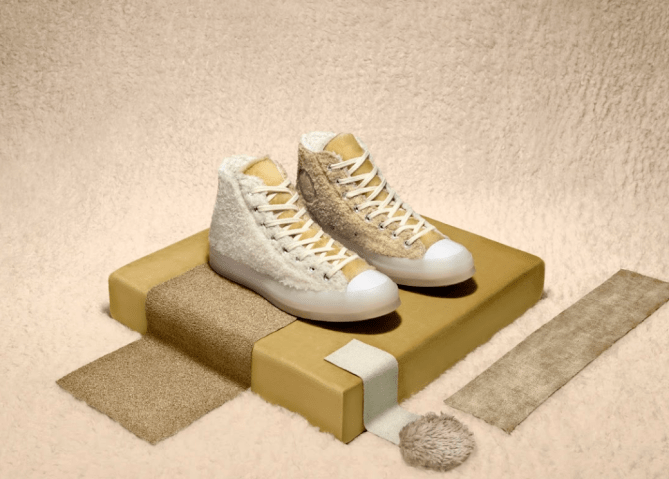 Actually, both pairs of CLOT x Converse sneakers are inspired by the polar bear—a majestic but also very cozy-looking creature. The classic Chuck 70 Hi-Tops feature Sherpa patchwork details on the outside, and are fur-lined on the inside. It’ll basically feel like a polar bear is curled up sleeping on your feet. So. Much. Warmth.
