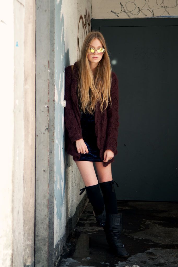 1. Keep your clothes loose and kinda unflattering. No matter how you slice it, thigh-high boots add a serious dash of sex appeal, and it’s for this reason you can rock an otherwise less-than-figure-flattering dress, like a boxy shift or oversized shapeless sweater, which balances the inherent sexiness of the shoe style.