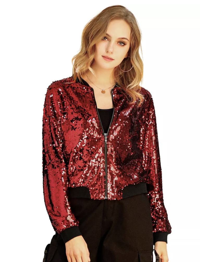 If you want to put Swift’s sparkly spin on the outfit, opt for this fun sparkly bomber jacket from Target. As a bonus, you’ll be able to wear it again for any Eras Tour-related events.