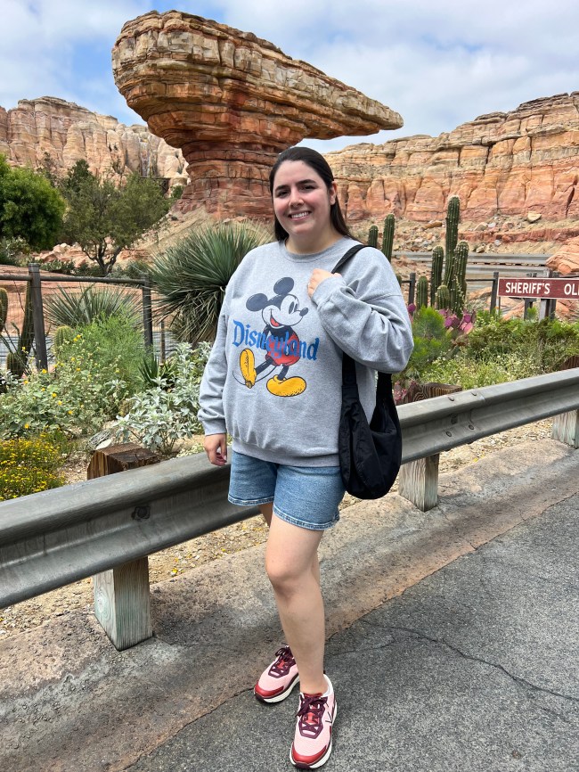 Being comfortable is always my priority at Disneyland, whether I’m just hanging out for a few hours on a solo day, or planning an all-day visit with friends. You can usually find me in a T-shirt from the parks, comfortable denim or biker shorts, and a bag that holds all of my essentials.