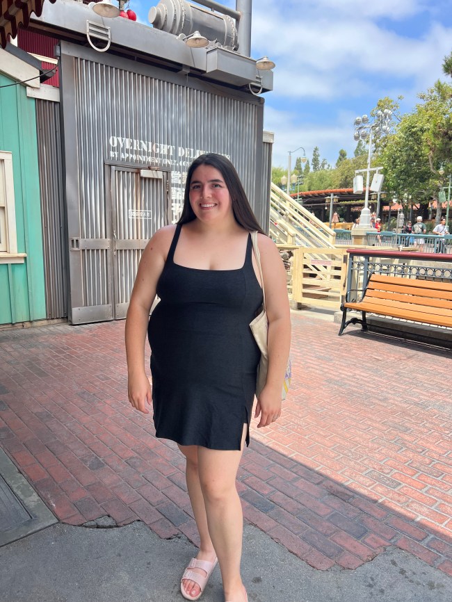 “Whenever I go to Disneyland, I like to wear something I’m not going to cry over if it gets splashed with chlorinated park water, because that’s exactly what’s going to happen. Now that I have a kid, I also cannot worry about getting Dole Whip or churro sugar flakes all over it, too. Which is why I’ll wear something like this Cupshe button-up dress. It’s lightweight, stretchy (thanks 5 percent Spandex), and has a versatile design, so I can easily wear it with some bike shorts and sneakers. It’s under $40 (but looks more expensive).” –Gina Vaynshteyn, Editorial Director