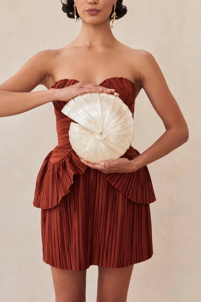 Move over, boring florals and in-your-face Barbiecore — summer 2023 is actually all about seashells. What began with #mermaidcore has evolved into an entirely separate trend of its own. It’s nearly impossible to scroll through Instagram or TikTok without spotting eye-catching iridescent shells that’ll make you pine for a vacation. Brands such as Cult Gaia, Staud, PatBo, and Retrofête have all released shell-adorned clothes worthy of Ariel’s treasure trove, while Simkhai’s sculptural oyster clutch and Cass Dimicco’s conch jewelry offer a surreal finishing touch. (As for those puka shells you used to pick up on spring break, consider an elevated upgrade from Lizzie Fortunato or Anni Lu.)