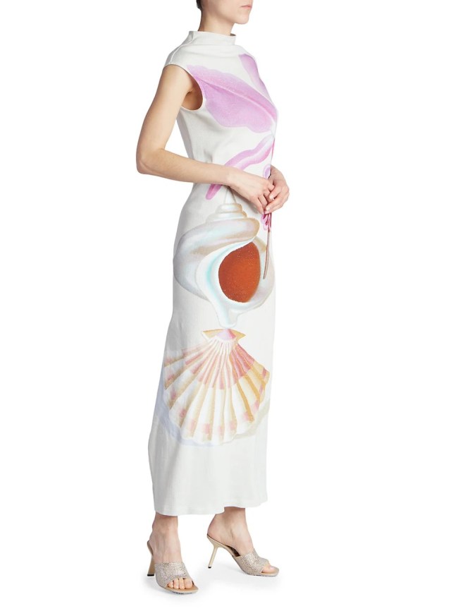 Retrofête, a brand known for its glorious sequins, is now getting recognized for shells. This mermaid shell embellished Regina dress takes summer whites to the next level.