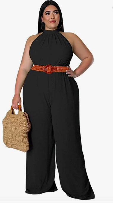 The wide leg look is everything in this jumpsuit that also comes in five other shades. The halter neckline is perfect for summer and you can find it in sizes XL through 5X.