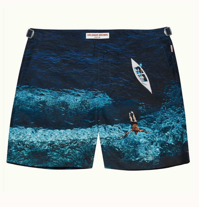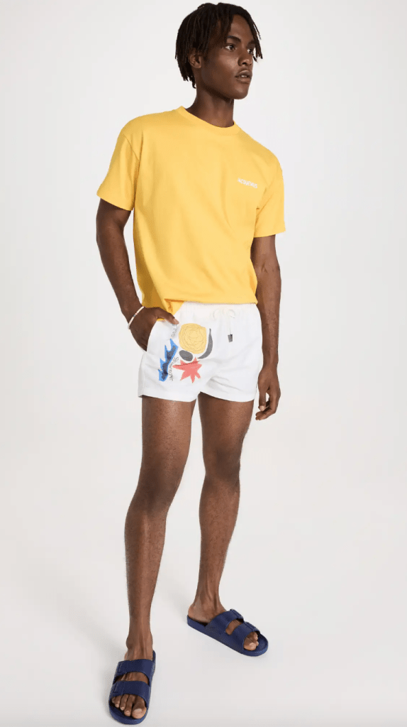 If you think of a vacation as a non-stop fashion show, your pool looks need to be runway-worthy. The swim trunk options from Olrebar Brown are just that. The price point is on the higher end but the shorts look like literal artwork.