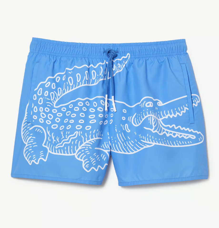 Lacoste is a classic pick for summer vacation wear whether you’re heading to the golf course, the pool, or to the beach. Lean into the brand’s aesthetic with these crocodile swim trunks.