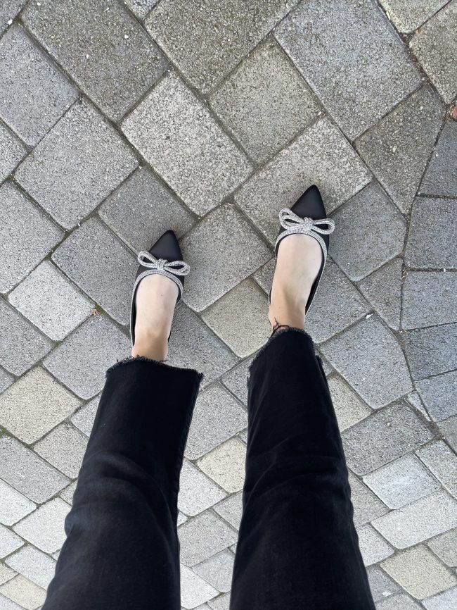 The best detail, and it’s the one that’s sending TikTok, is the rhinestone bow and border. It’s soooo similar to the Mach & Mach heels. In fact, if you’re looking for heels versus flats, A New Day has a heeled version of these that are a dead ringer for Mach & Mach — and they’re just $40.