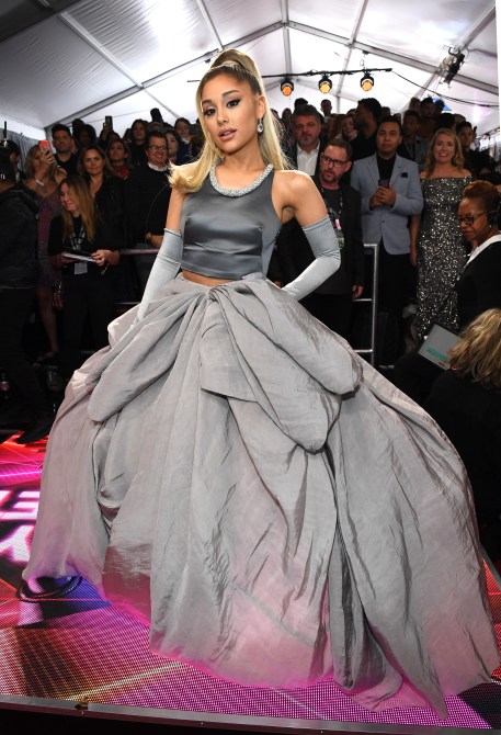 Ariana Grande wears a custom Cristian Siriano bubble dress.