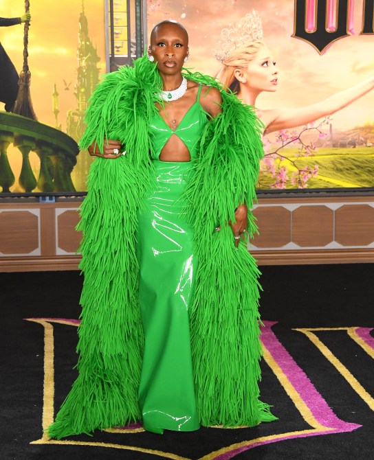 Since the start of the Wicked press tour, Erivo’s looks have had a really specific look. She’s really leaned into the whole “method dressing,” which a handful of popular actresses have employed before, namely Zendaya, Margot Robbie, and Blake Lively for their recent releases. Though I do think that’s going to go out of fashion soon. Actress, artist, and low-key It Girl Hari Nef called it boring recently, and plenty of other people have said the same. But the truth remains that it’s a great way to get a lot of attention on a movie, even if it’s not necessarily cool. And Wicked‘s press tour is definitely doing numbers, and Erivo and her co-star Ariana Grande have made it pretty clear that they’re not concerned even in the slightest about looking cool. This movie is about sincerity and lots of tears, and dressing in costume is what earnest musical theatre kids do best.