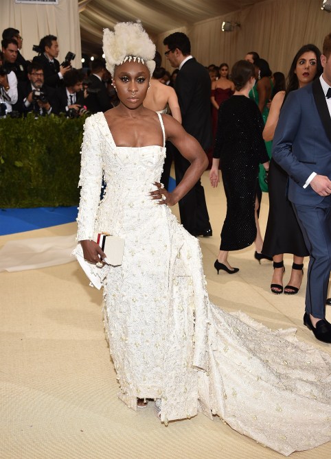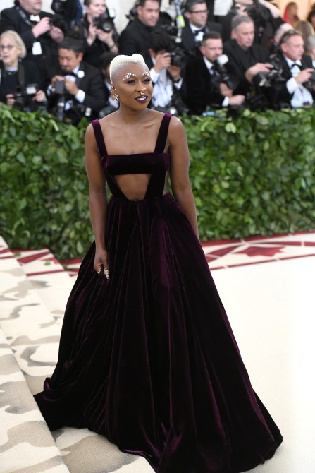Erivo has been to more Met Galas than we can count, her first one being in 2017, where she wore a white asymmetrical gown from Thom Browne. The theme honored Comme des Garçons designer Rei Kawakubo. She’s attended Tony Awards, movie premieres, awards shows, and more. And she’s worn designers who are household names, like Louis Vuitton and Schiaparelli to more independent designers like Luisa Beccaria and Giles Deacon. She’s experimented a lot with silhouettes, sometimes opting for more basic A-line shapes, and other times going for more avant garde shapes.
