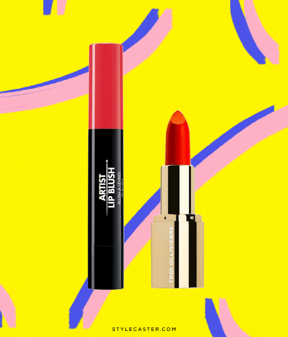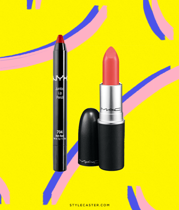 NYX Jumbo Lip Pencil in Hot Red, $4.50; at NYX; M.A.C Lipstick in Vegas Volt, $17; at M.A.C Cosmetics