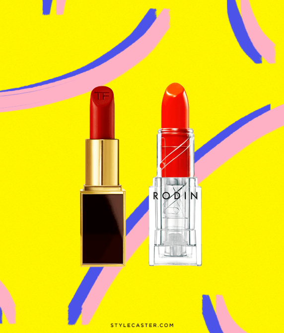 Tom Ford Beauty Lip Color Matte in Ruby Rush, $53; at Violet Grey; Rodin Lipstick in Tough Tomato, $38; at Need Supply