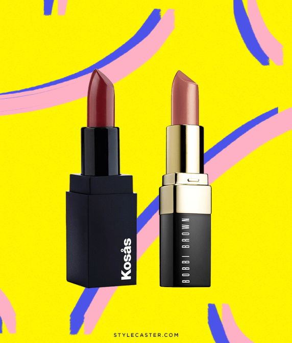 Kosås Lipstick in Fringe, $24; at Kosås Cosmetics; Bobbi Brown Lipstick in Blondie Pink, $28; at Sephora