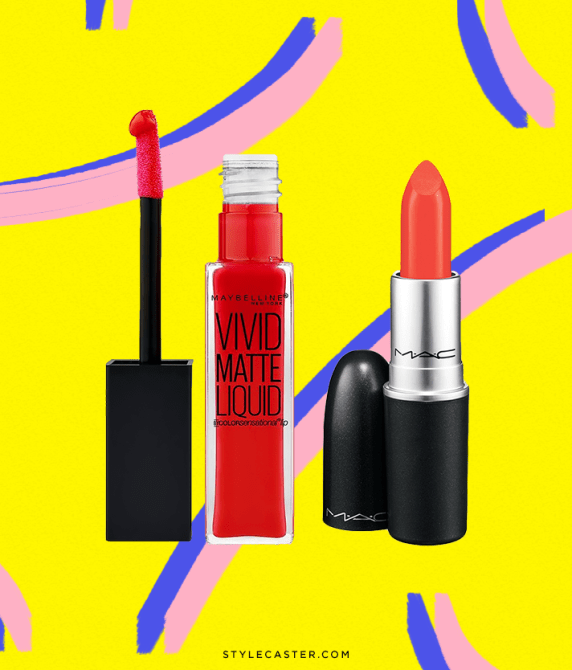 Maybelline Liquid Matte in Orange Shot, $7.99; at Maybelline.com; MAC Lipstick in Neon Orange, $17; at MAC Cosmetics