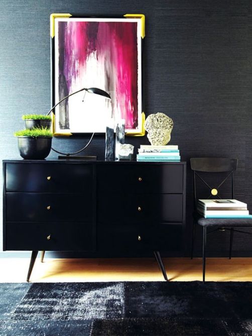“I’m dying to wallpaper my front foyer in navy, black, or gray grasscloth. I’m a big believer in dark walls—I’m obsessed with how rich it makes a space, while also making it appear larger. I also would love to do the wall behind my bed, but my foyer is first on my list.”—Perrie Samotin, editorial director