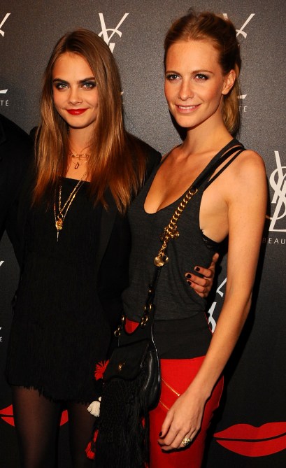 LONDON, ENGLAND – JANUARY 20: (L-R) Cara Delevingne and Poppy Delevingne attend the YSL Beaute Makeup Celebration ‘YSL Loves Your Lips’ in the presence of Cara Delevingne at The Boiler House, The Old Truman Brewery, on January 20, 2015 in London, England. (Photo by David M. Benett/Getty Images for Yves Saint Laurent Beaute)