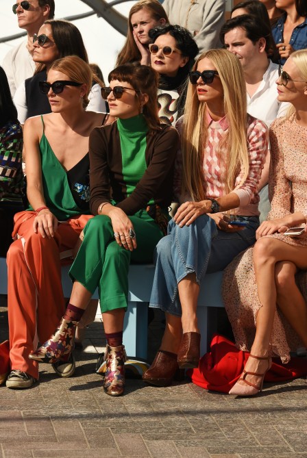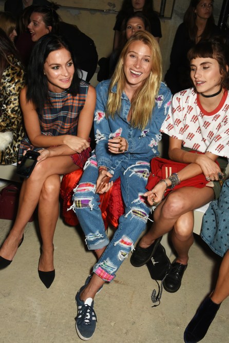 LONDON, ENGLAND – SEPTEMBER 20: (L to R) Dree Hemingway, Langley Fox Hemingway, Laura Bailey and Poppy Delevingne attend the Jonathan Saunders show during London Fashion Week SS16 at Lewis Cubitt Square, King’s Cross, on September 20, 2015 in London, England. (Photo by David M. Benett/Dave Benett/Getty Images)