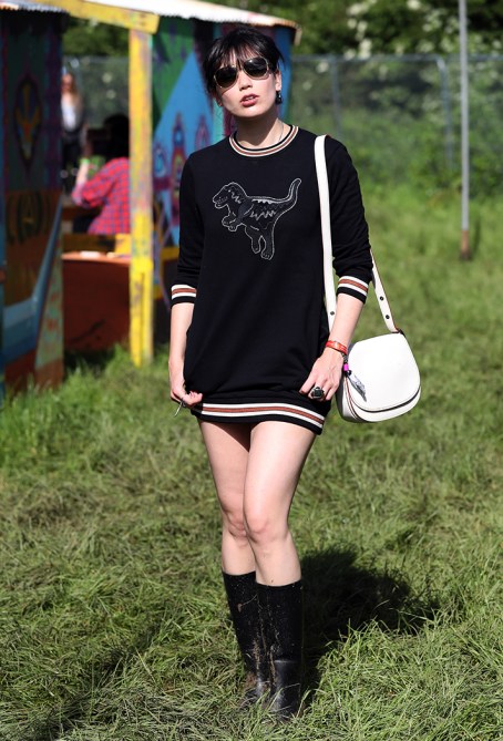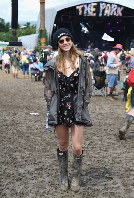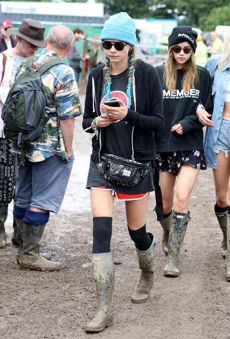 Cara Delevingne in Hunter boots and Polaroid sunglasses