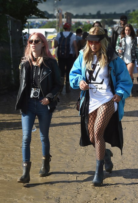 Suki Waterhouse and Lily Donaldson in Hunter boots