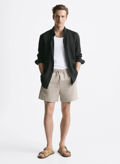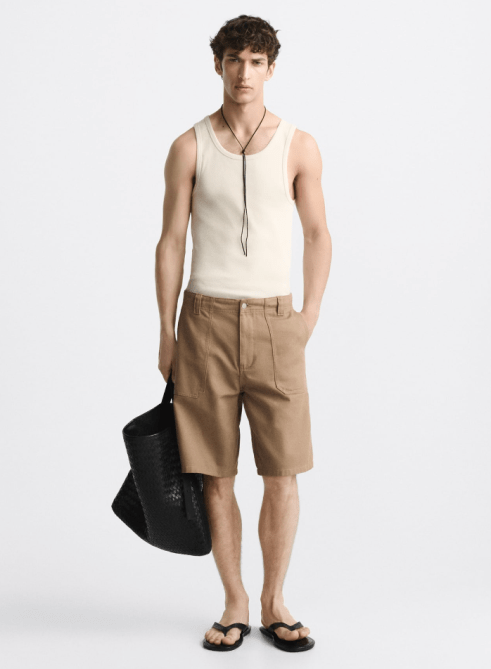 This look strikes a great balance between elevated and simple. The white tank and shorts are very casual but the leather accessories turn it into a true outfit. This would also work with a pair of Birkenstocks and a canvas tote bag.