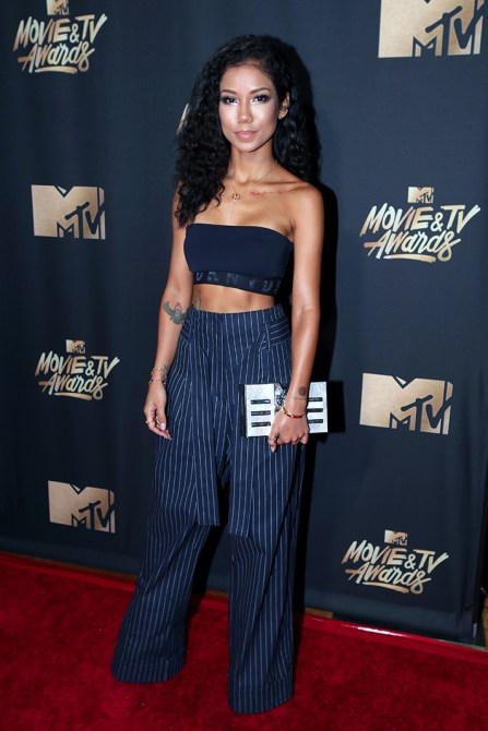 In a Baja East outfit, Stuart Weitzman shoes, and jewelry by Argento Vivo, Jacquie Aiche, and Gabriela Artigas.