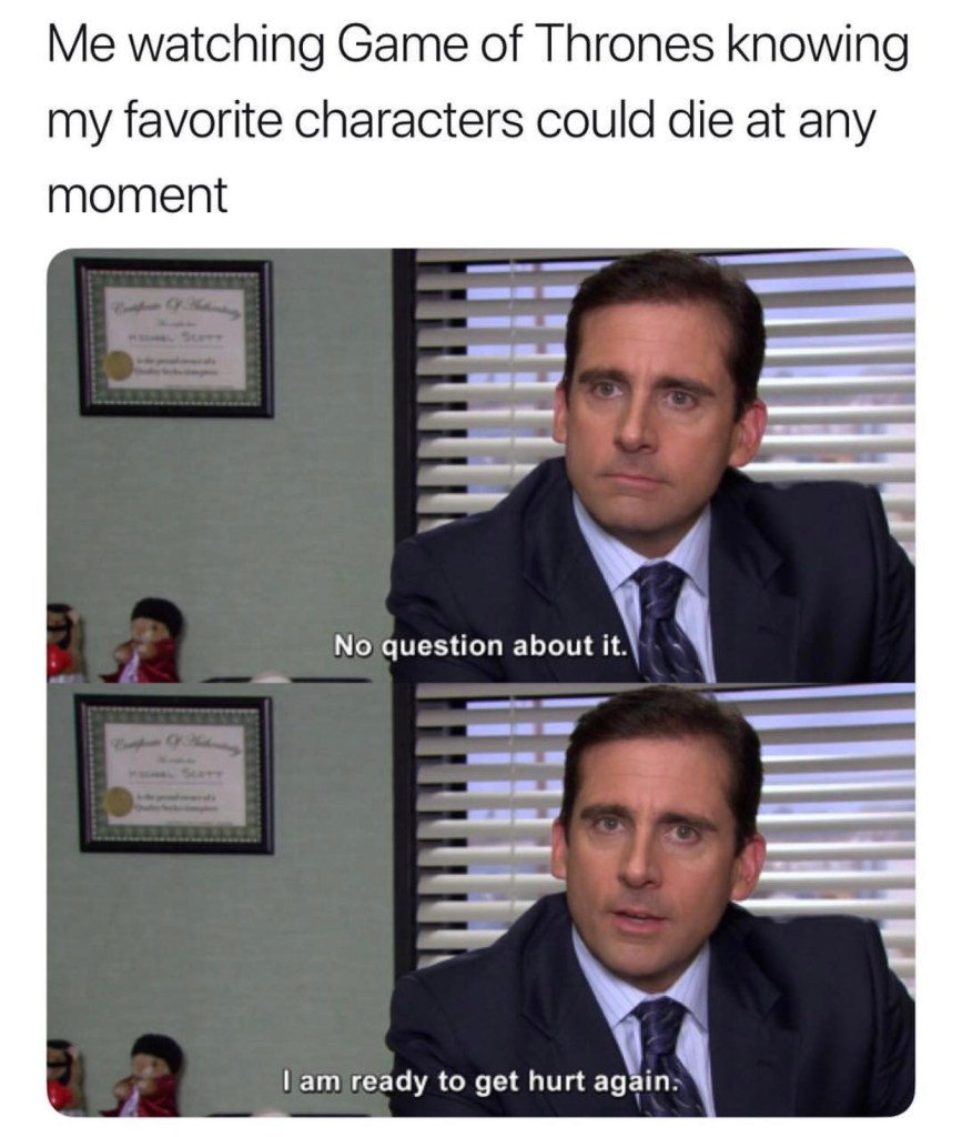 Well, that was fun. But in all seriousness, we’re in for a ROUGH Sunday night this weekend. No way is GOT gonna let us get away with no deaths halfway through the season. We will likely lose many characters, and we aren’t prepared yet! Enjoy the happy-go-lucky memes while they last.