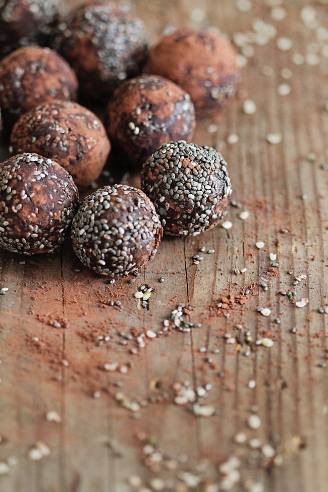 Whip up chocolate chia protein balls by mixing all the below ingredients into a bowl or food processor. Let the mixture cool in the fridge for five minutes, and then roll into balls and serve as is or coated with shredded coconut. This should make about 10 balls.
