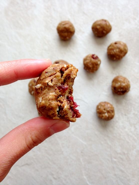 Cranberry coconut balls are a sweet and healthy snack that take zero effort to make—they only use six ingredients. In fact, all you need to do is combine the below ingredients in a bowl, roll into small balls, and chill in the fridge.