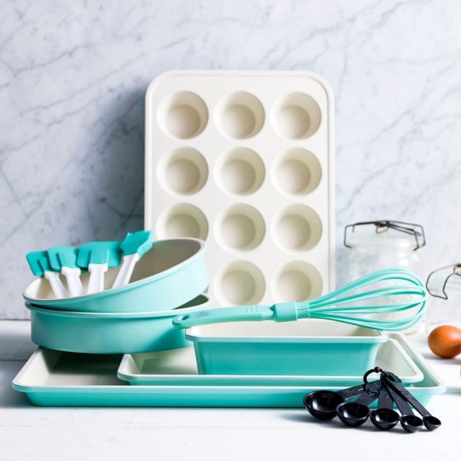 The aspiring, amateur baker in your life definitely needs this. The set has everything one needs to make baked goods, including multiple cookie sheets, silicone spatulas, measuring spoons, and more.