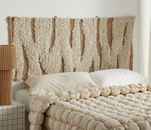 When you live in a small space, make furnishings that don’t take up a ton of room but have the power to pack a major design punch do the heavy lifting. Take this jute tapestry headboard, for example. It provides utility and visual interest and brings all the natural, chill coastal cowgirl vibes.