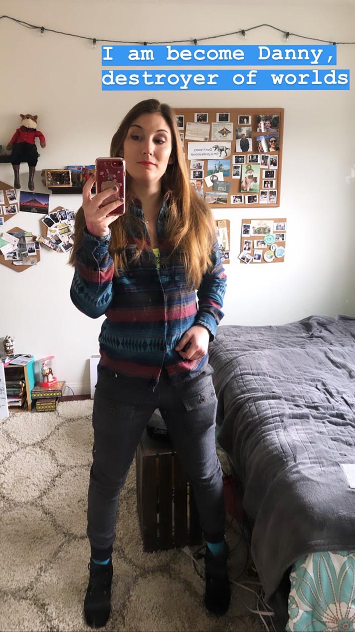 They had experienced this exact phenomenon two Halloweens ago, when Lauren borrowed some of her boyfriend’s clothes to dress up as her coworker Brock. “Those pants were vintage,” he said, like maybe he was still a little nervous about it a year and a half later. Lauren says she avoided borrowing one of Daniel’s oldest shirts for this swap because she didn’t want to be anxious about him being anxious.  “The orange one?” Daniel asked, “You should have taken that one, it’s on its last legs anyway, and it’d look cute on you.”