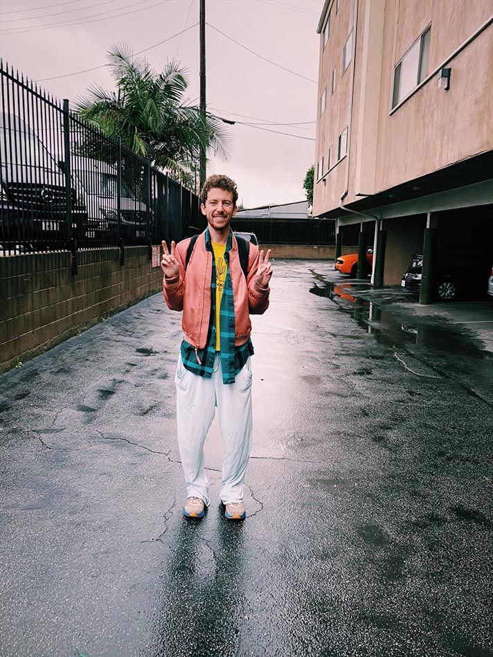 Danny’s other favorite thing about my wardrobe (obviously a second distant to its pajama-like quality) was the variety of color he had. “They weren’t brown or blue like everything else I own.” He said it was fun to try styles and pieces he wouldn’t find in a standard men’s section—stuff like my peach bomber jacket or my long plaid shawl. He thought my closet had some flair to it, and wearing it made him feel like he looked “how celebrities or basketball players dress—edgy, but not pushing it too far.” He was able to find some freedom of expression in my more versatile wardrobe while still remaining in a space that was comfortable for him.