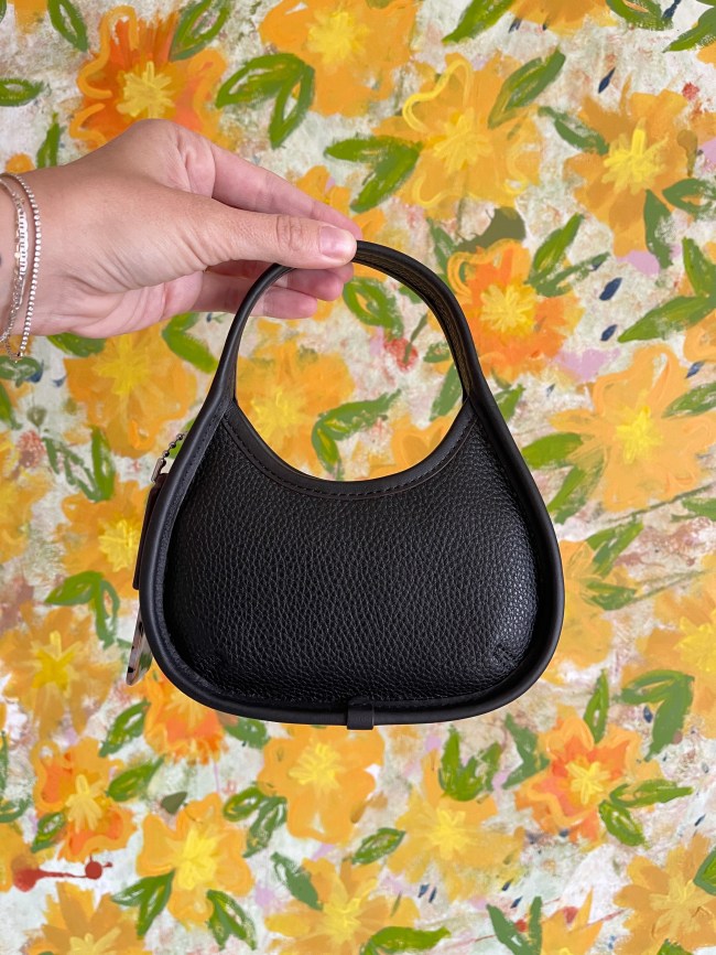 The Coach Mini Ergo Bag is an adorable, pint-sized designer bag constructed from the brand’s pebbled Coachtopia leather, meaning it’s made from at least 50 percent recycled leather scraps. It comes in three colors (I bought it in black) and measures 6.5 inches long, 8 inches tall, and 2.5 inches wide, so it’s a perfect fit for the micro bag trend. The bag also comes with a crossbody strap, so you can carry it like a handbag or go completely hands-free, and it features two hang tags for an accessorized touch.