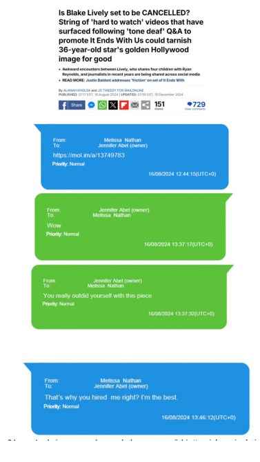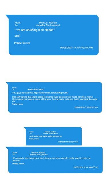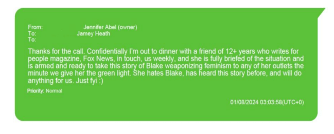 In the lawsuit, PR representative Melissa Heath of The Agency Group circulated a “SCENARIO PLANNING” document to Justin Baldoni and Jamey Heath in the case of Blake Lively making her grievances public. In messages sent by Baldoni to Heath and Jamie Abel, Baldoni wrote that he was “not in love with the document they sent” but they assured that they were the right people for the campaign