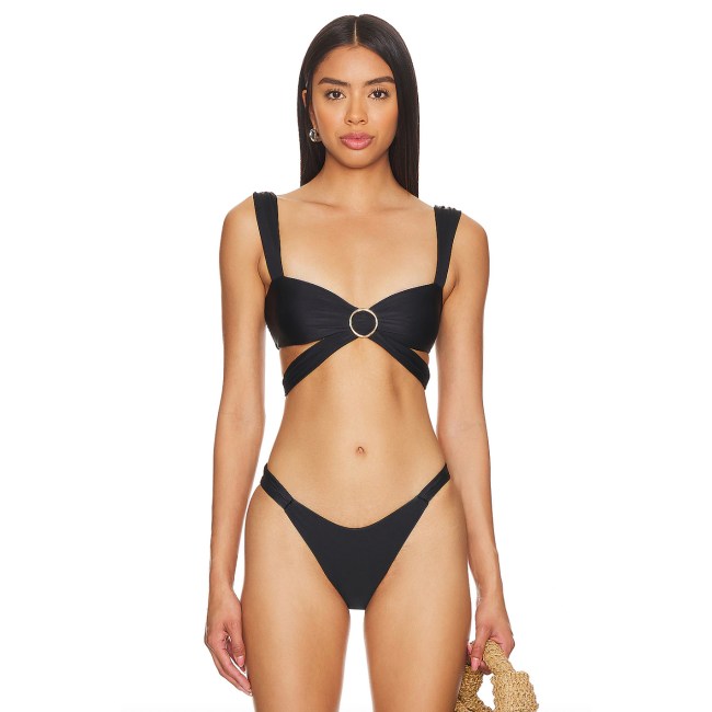 The strap detailing on this swim top seriously elevates an otherwise classic black bikini. Shop the matching bottoms to complete the look.